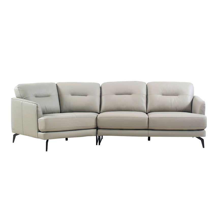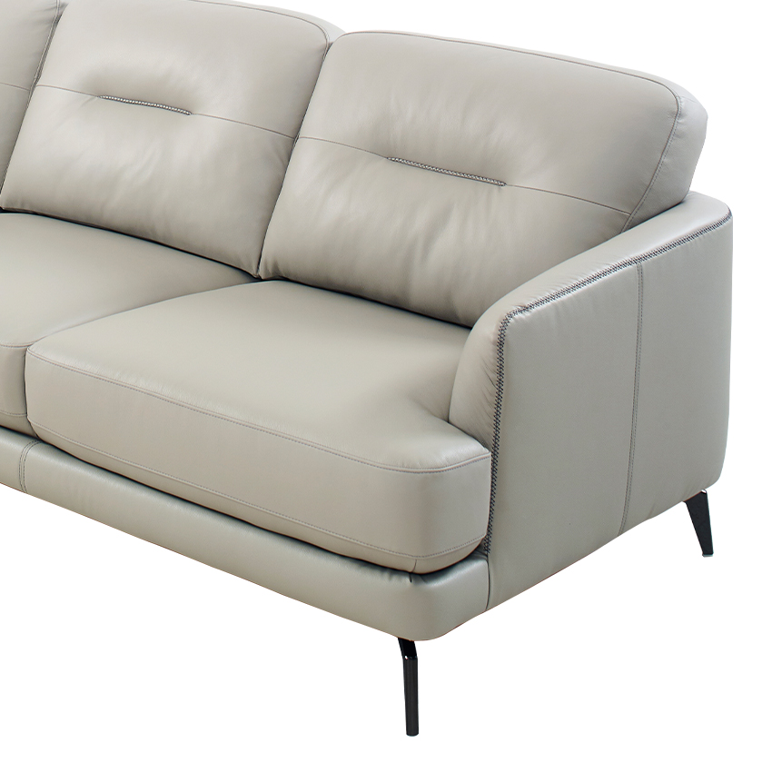 ZA73-Light Grey Leather Chaise Sofa