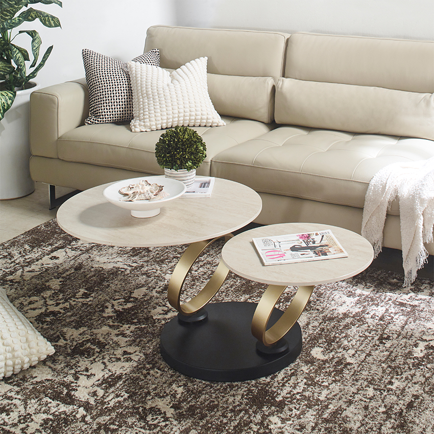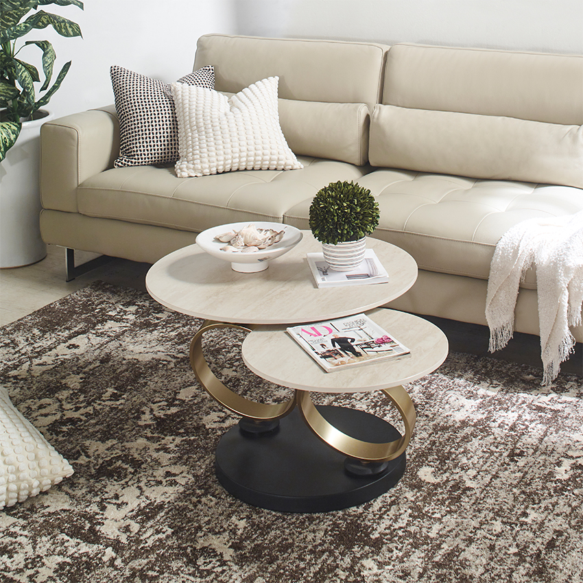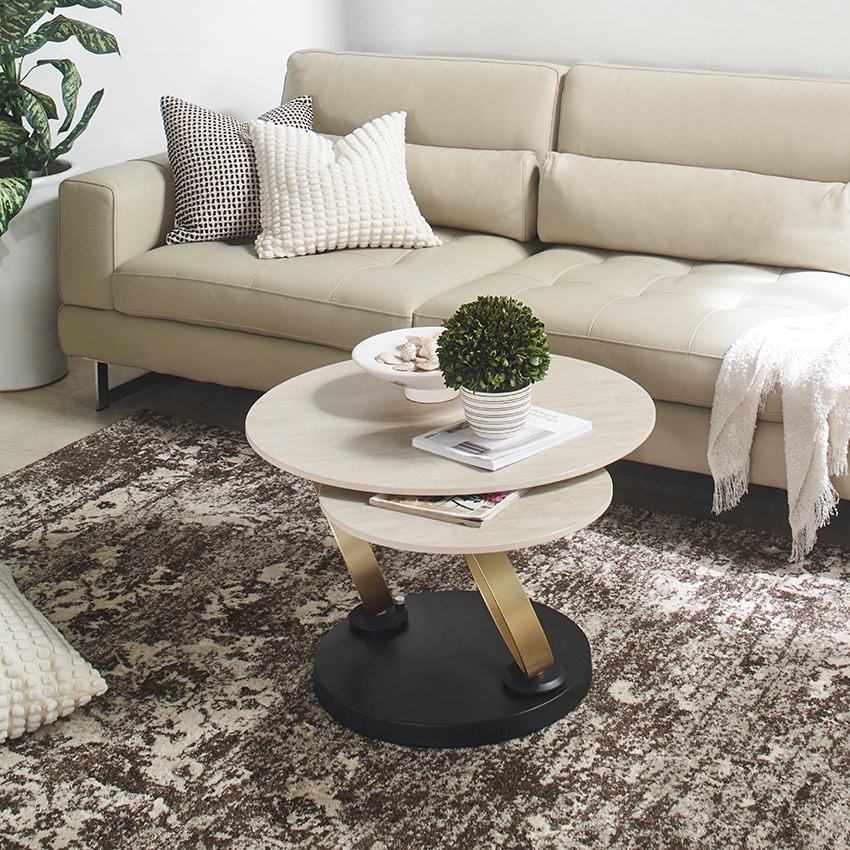 1. 발품 팔아 찾은 보람이 있는 완벽한 선택 새 소파와 어울리는 테이블을 찾기 위해 인터넷을 2주 동안이나 뒤졌지만 확신이 생기지 않았어요. 결국 미라지가구 매장에 직접 방문해 실물을 보고 이 제품으로 결정했는데, 저희 집 거실에 놓인 모습을 보니 역시 제 선택이 옳았다는 생각이 듭니다! 2. 월넛 톤 거실의 화사한 반전, '트라버틴 디자인' 전체적으로 월넛 톤이라 조금 어두웠던 거실이 이 테이블 덕분에 마법처럼 환해졌어요. 밝은 컬러의 트라버틴 천연석 느낌으로 디자인된 세라믹 상판이 고급스러운 우아함을 더해주고, 식물들과도 너무 잘 어우러져 거실 분위기가 훨씬 생기 있어졌습니다. 3. 견고함과 촉감까지 다 잡은 '통 세라믹' 고온에서 가공된 견고한 통 세라믹 상판은 직접 만져보면 그 단단함과 부드러운 촉감이 고스란히 느껴집니다. 스크래치에 강한 친환경 소재라 일상에서 마음 편히 사용할 수 있고, 매끄러운 마감 덕분에 사용할수록 품질의 차이가 느껴지네요. 4. 공간 활용의 마법, '듀얼 레벨' 회전 기능 이 테이블의 가장 큰 매력은 서로 다른 높이의 듀얼 레벨 상판과 자유로운 회전 기능이에요! 상판 두 개를 겹쳐서 하나로 쓰거나, 필요할 때 펼쳐서 넓게 사용할 수 있어 공간 활용도가 정말 뛰어납니다. 시각적으로도 입체적이고 트렌디한 느낌을 주어 거실의 중심을 딱 잡아주네요. 5. 세련된 골드&블랙 메탈 베이스 테이블을 견고하게 지탱해 주는 골드 및 블랙 메탈 베이스는 안정감은 물론, 세련된 분위기를 연출하는 신의 한 수입니다. 인테리어 감각이 돋보이는 디자인 덕분에 매일 거실을 볼 때마다 뿌듯하고 행복합니다.