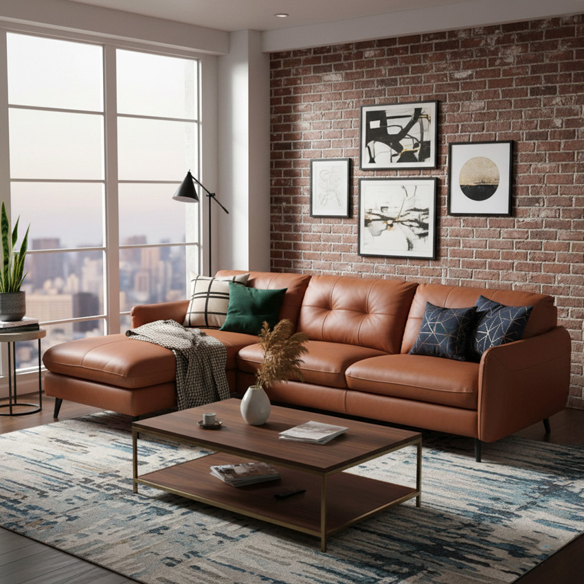 12112 Leather Chaise Sofa