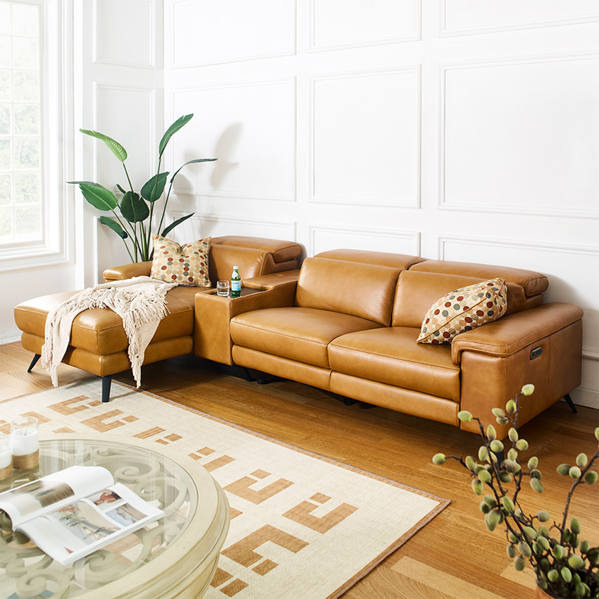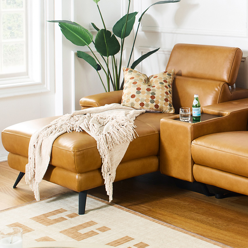 E1758-HoneyLeather Recliner Sofa