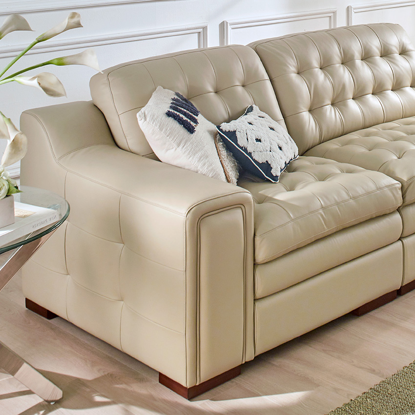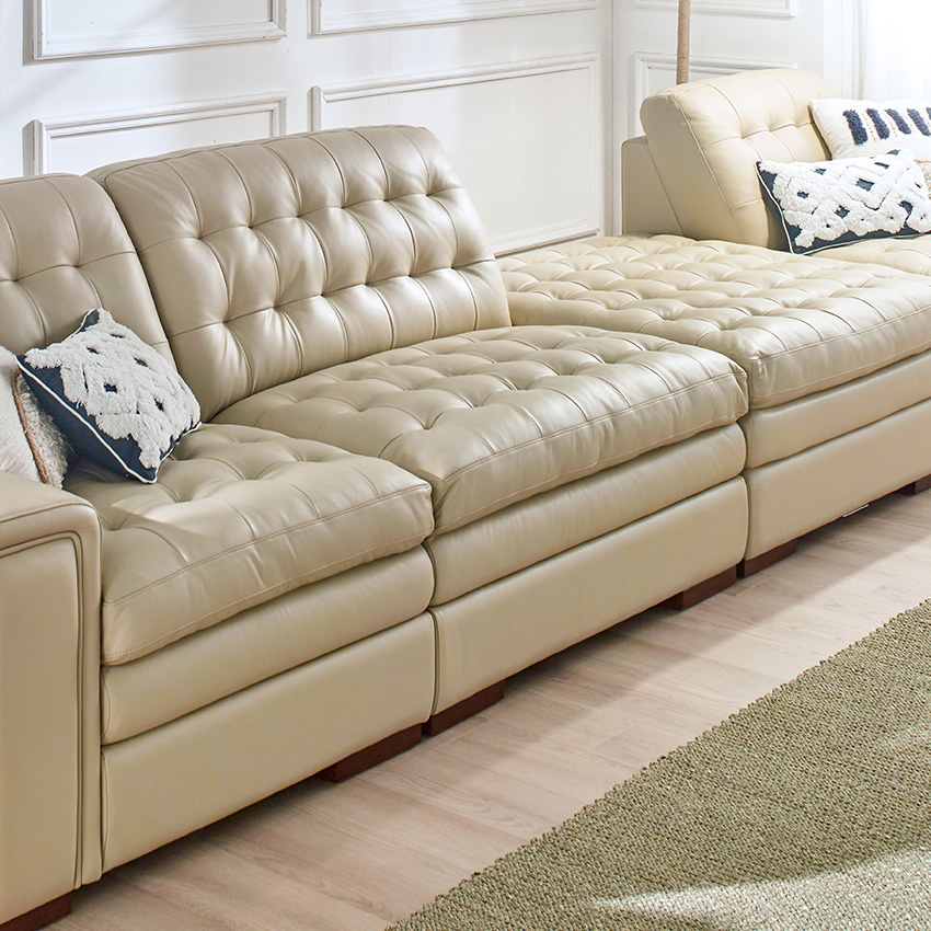 7491-MD-Ivory Leather Modular Sofa